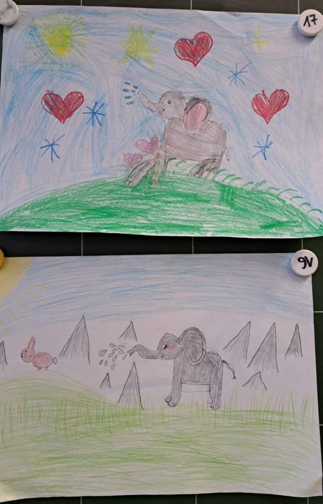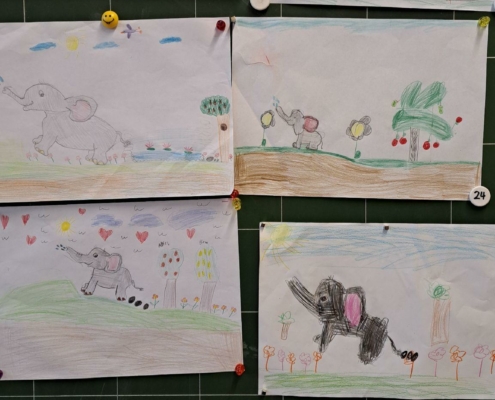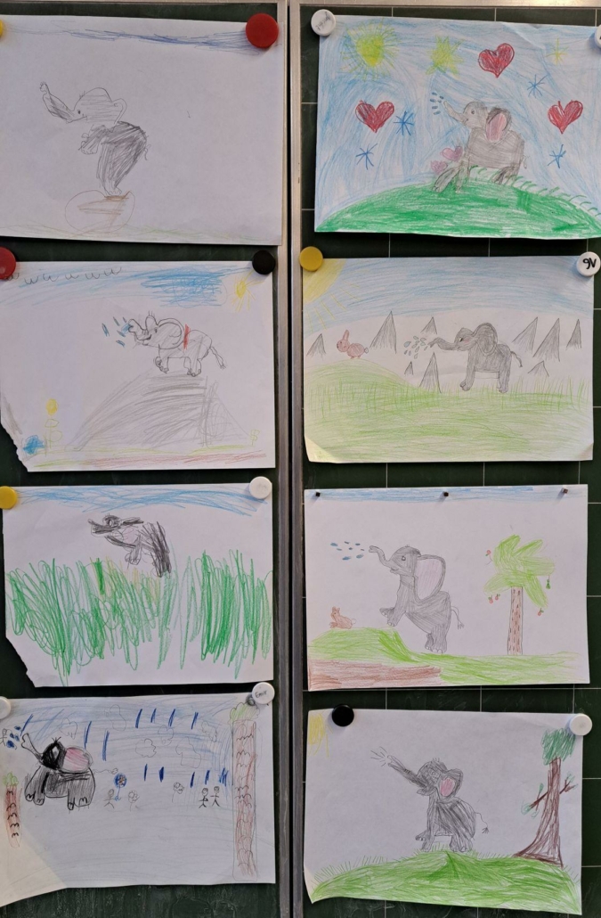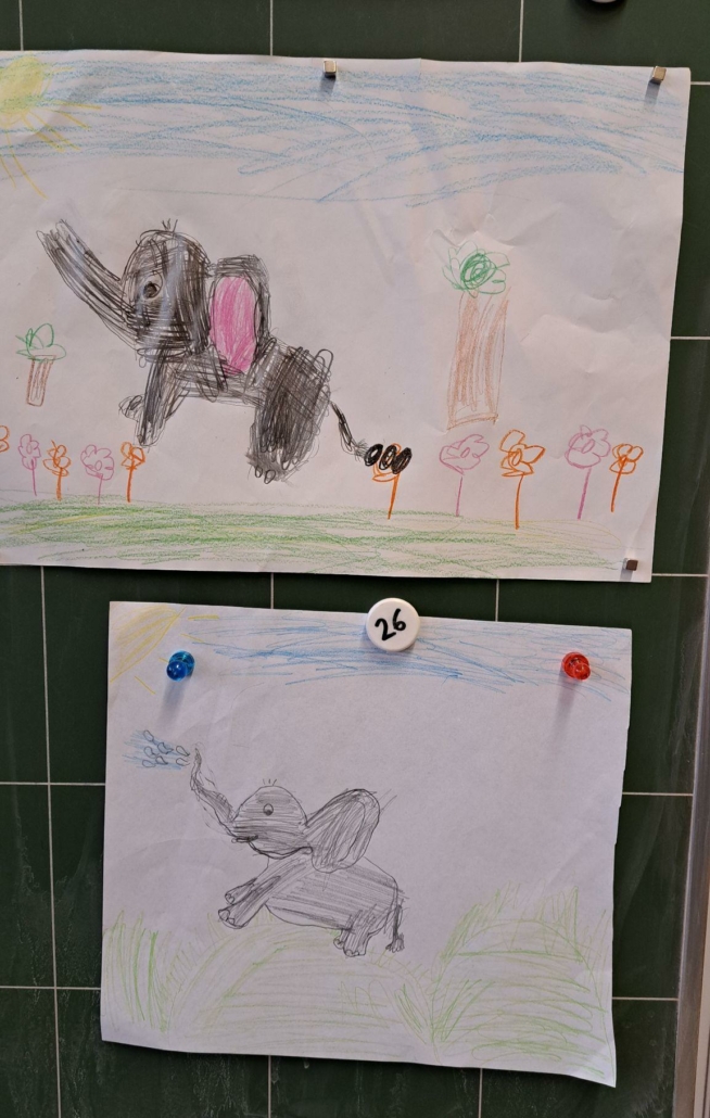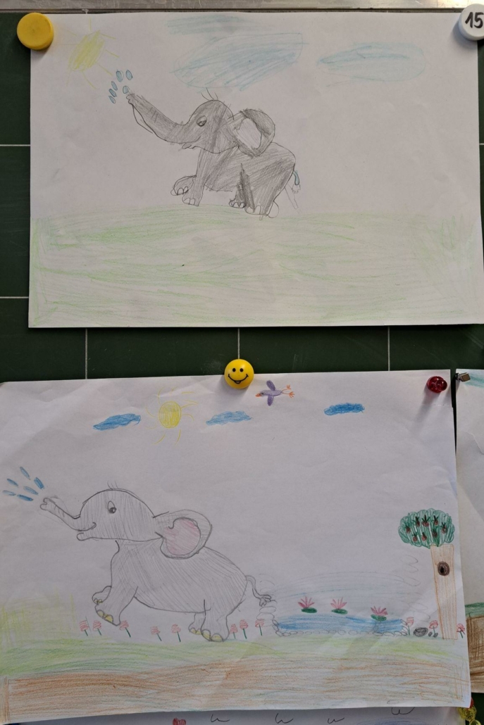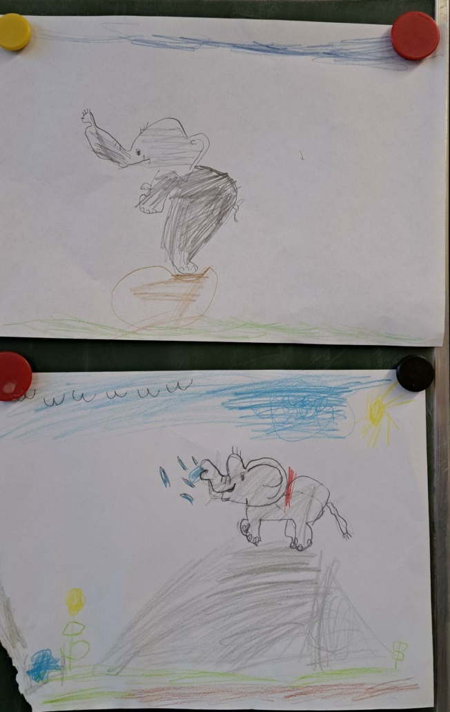 Die Epa hat versucht einen Elefanten zu zeichnen. Anfangs war dies eine richtig schwere Aufgabe, aber mit einer Schritt für Schritt Anleitung sind am Ende tolle Elefanten entstanden.