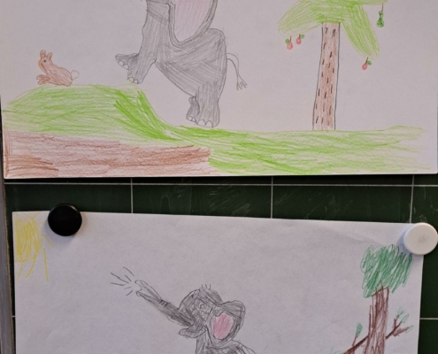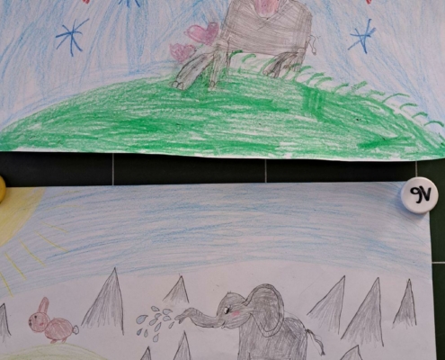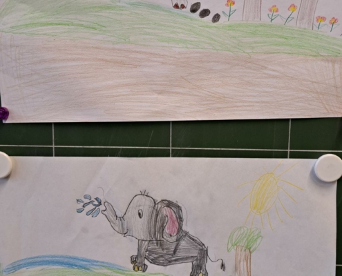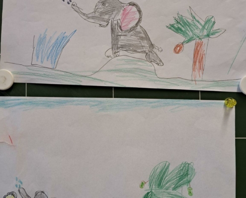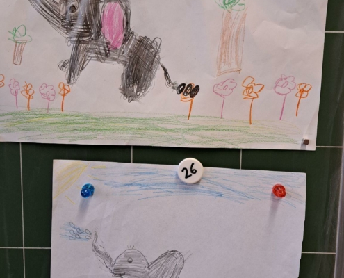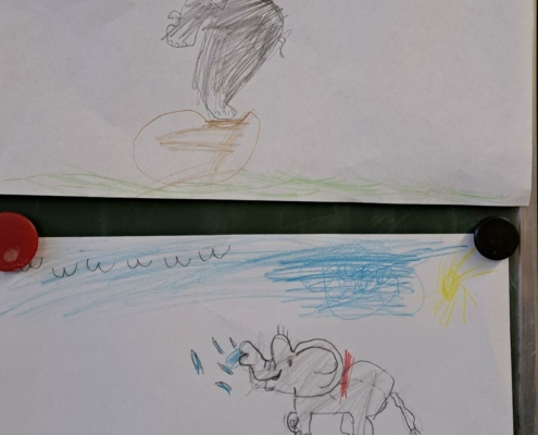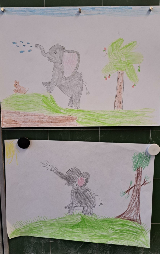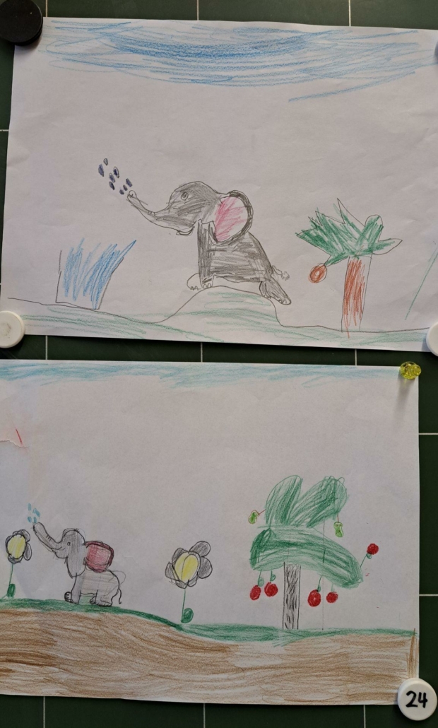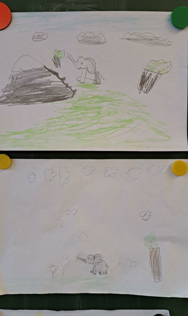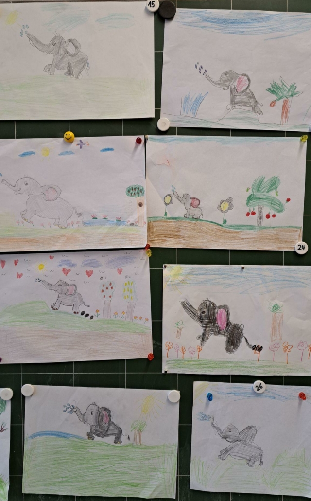 Die Epa hat versucht einen Elefanten zu zeichnen. Anfangs war dies eine richtig schwere Aufgabe, aber mit einer Schritt für Schritt Anleitung sind am Ende tolle Elefanten entstanden.