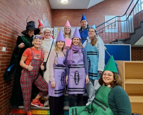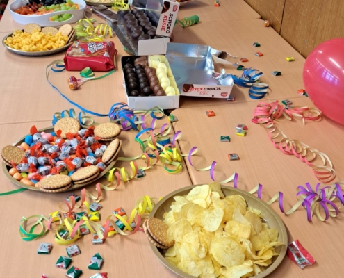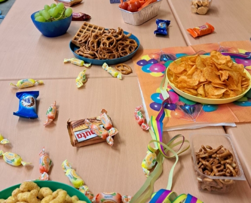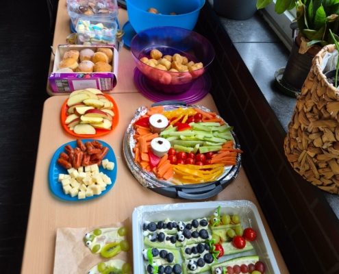 Die Schule war festlich geschmückt, alle Kinder kamen in tollen Kostümen. In den Klassen warteten liebevoll vorbereitete Buffets mit süßen und gesunden Leckereien. Ein besonderes Highlight war die Überraschungsaufführung der Tanztgarde-Kinder.