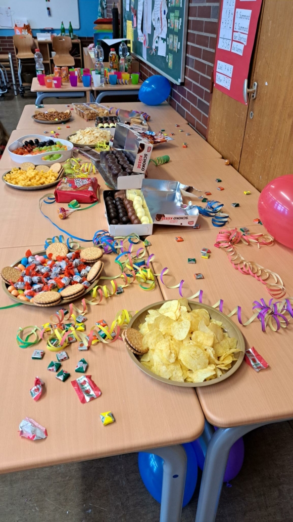 Mit Spielen, Musik und Tanz wurde in den Klassen weitergefeiert, bevor eine gemeinsame Polonaise auf dem Schulhof den gelungenen Tag abrundete. Ein rundum toller Tag!
